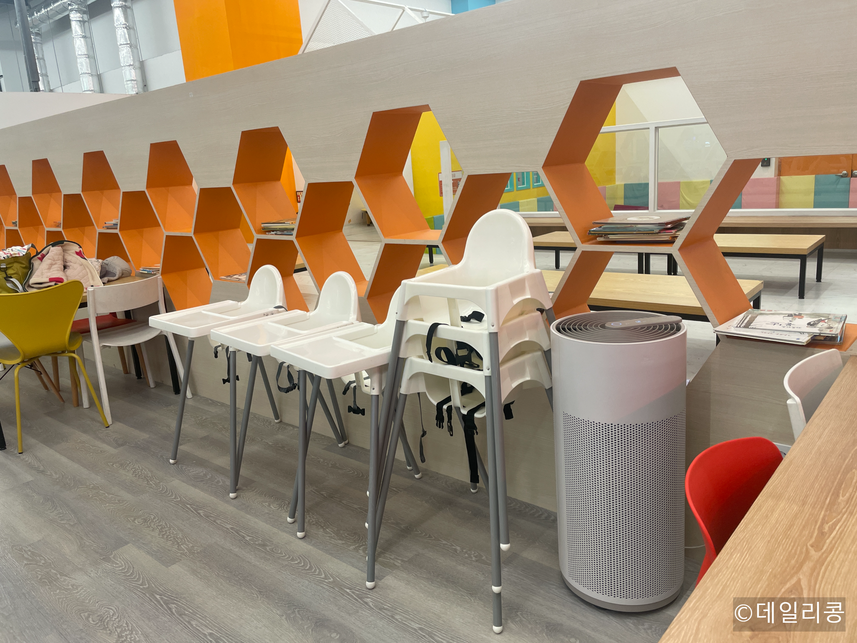 어린 아이들을 위한 아기 의자도 넉넉히 준비되어 있고, 좌식형 테이블이 있어 아직 의자에 잘 앉지 못하는 어린 동생이 있는 가정에서도 좋습니다. 참고로 <볼베어파크 기흥점> 내 매점에서 1만 원 이상 결제 시, 소인 2명까지 최대 30분 추가 이용 가능하니 활용해 보세요!