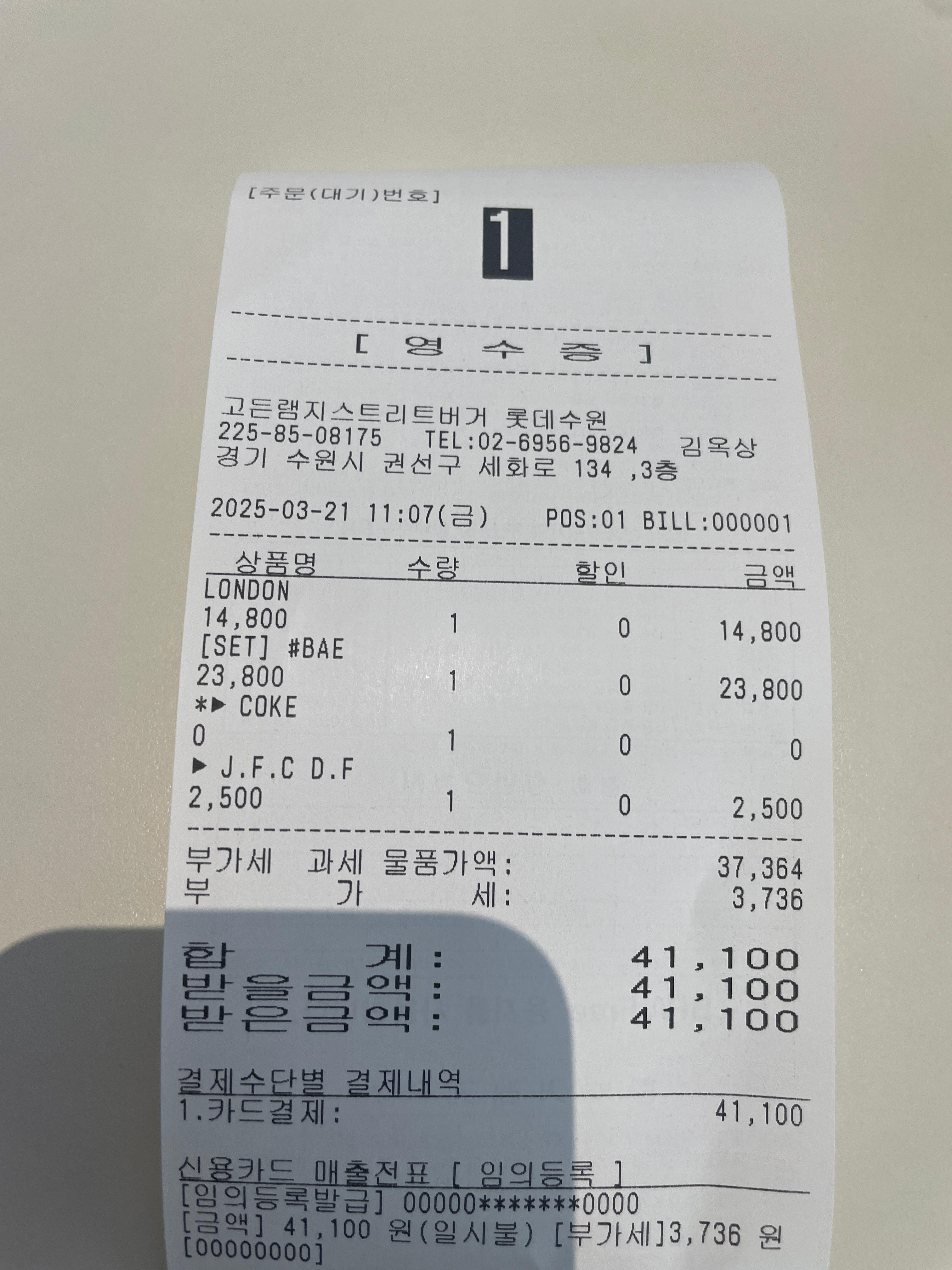 버거 단품이 1만 원대라 일반 패스트푸드보다는 비싸지만, 쉑쉑버거나 파이브가이즈 같은 프리미엄 버거들과 비교하면 비슷한 가격 수준이에요.